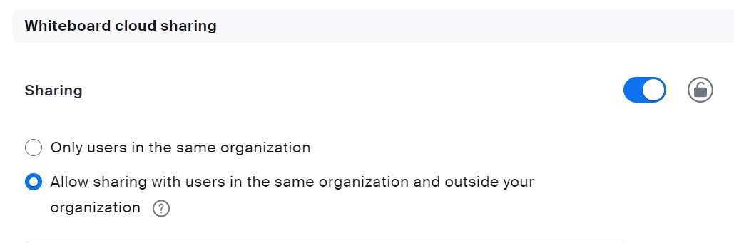 In 'in meeting whiteboard' settings under 'whiteboard sharing defaults' I get the error "your admin has disabled this setting for your organisation".