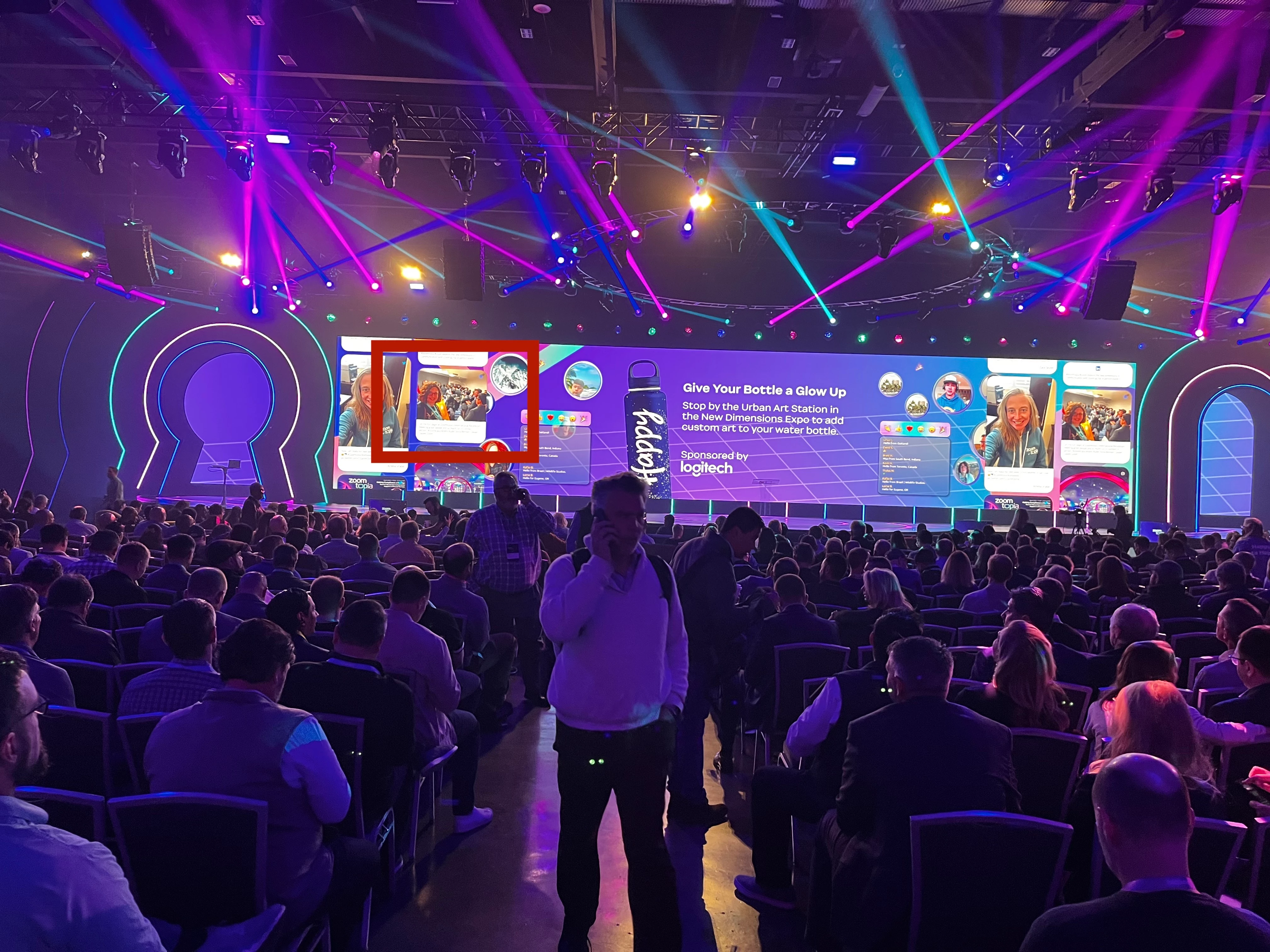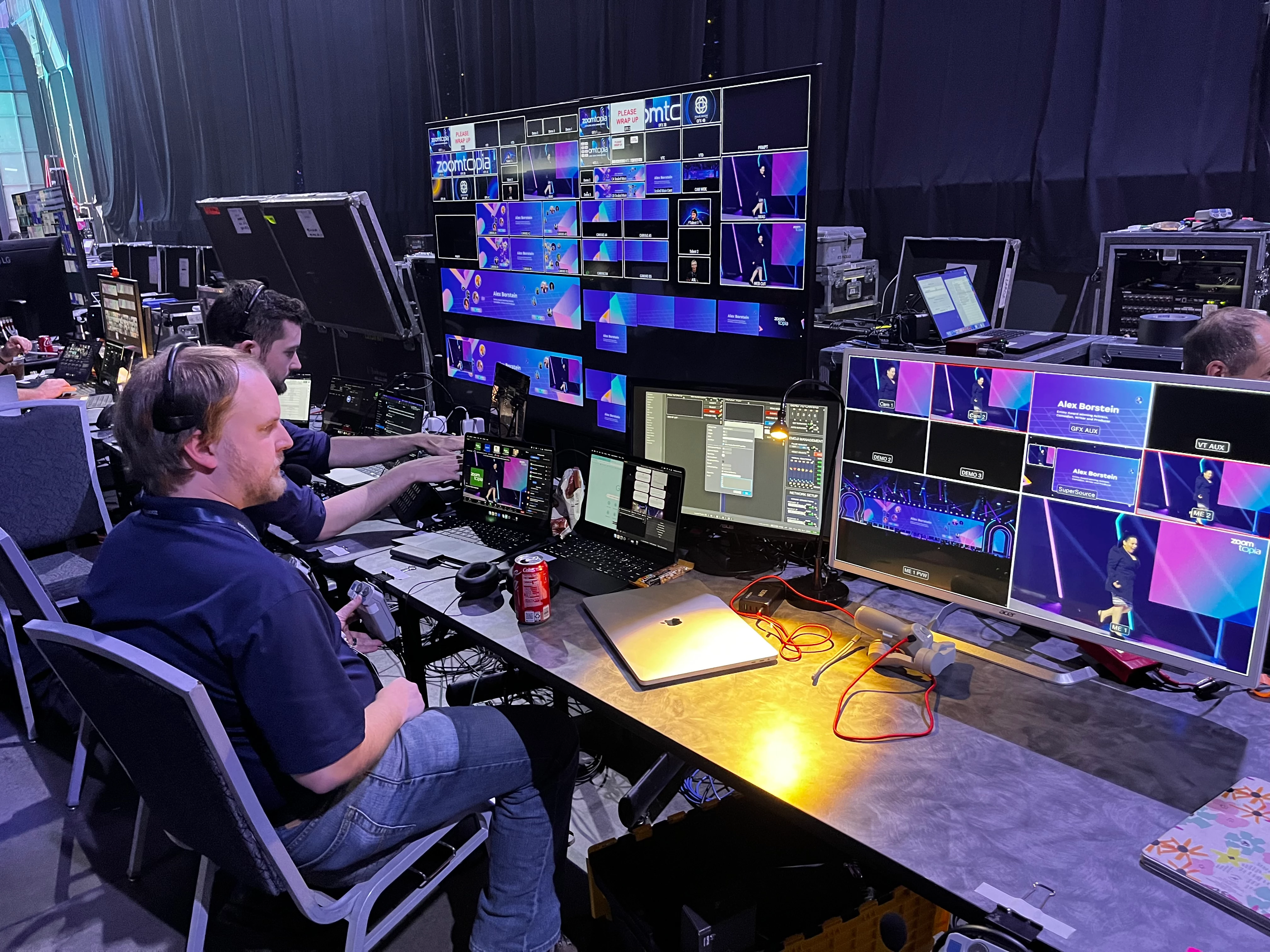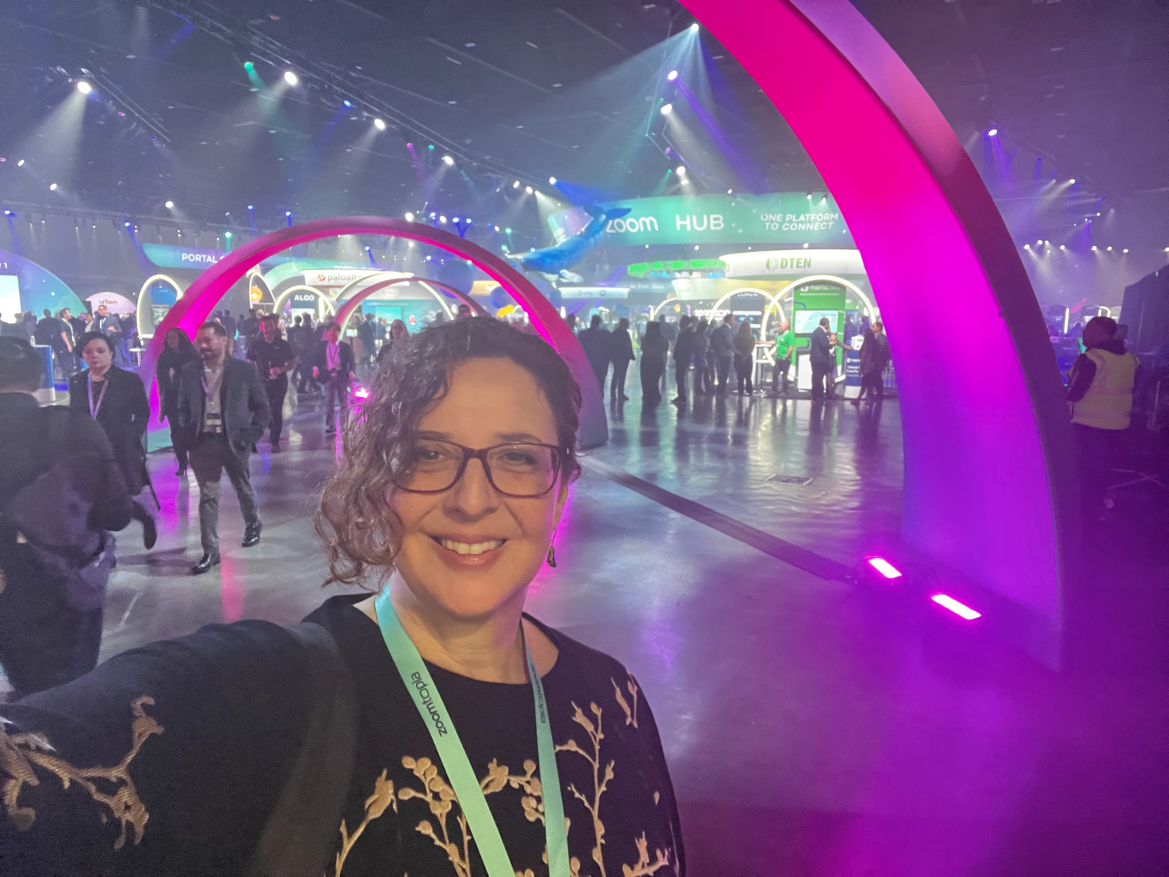 I was super excited to have been invited by Zoom to the Zoomtopia International Reception the evening before Zoomtopia which gave me the opportunity to network and mingle with Zoom partners and enterprise customers. During the reception I took a selfie and posted it on LinkedIn with #Zoomtopia. The next morning when I entered the main hall for the Vision and Product Keynote I was delighted to see my selfie on the main stage social wall!!! I was also lucky enough to get a tour behind the scenes of the main stage to see the incredible production work going on behind the scenes, combining live Zoom participants on the main stage, graphics, emojis, pre-recorded presentations and remote live speakers. Overall an incredible production, especially from a technical production p.o.v, the Zoom Professional Services Team definitely set the bar high! I attended all the sessions relating to virtual and hybrid events, and was excited to meet the many of the talented Zoom Events & Webinars team in person!